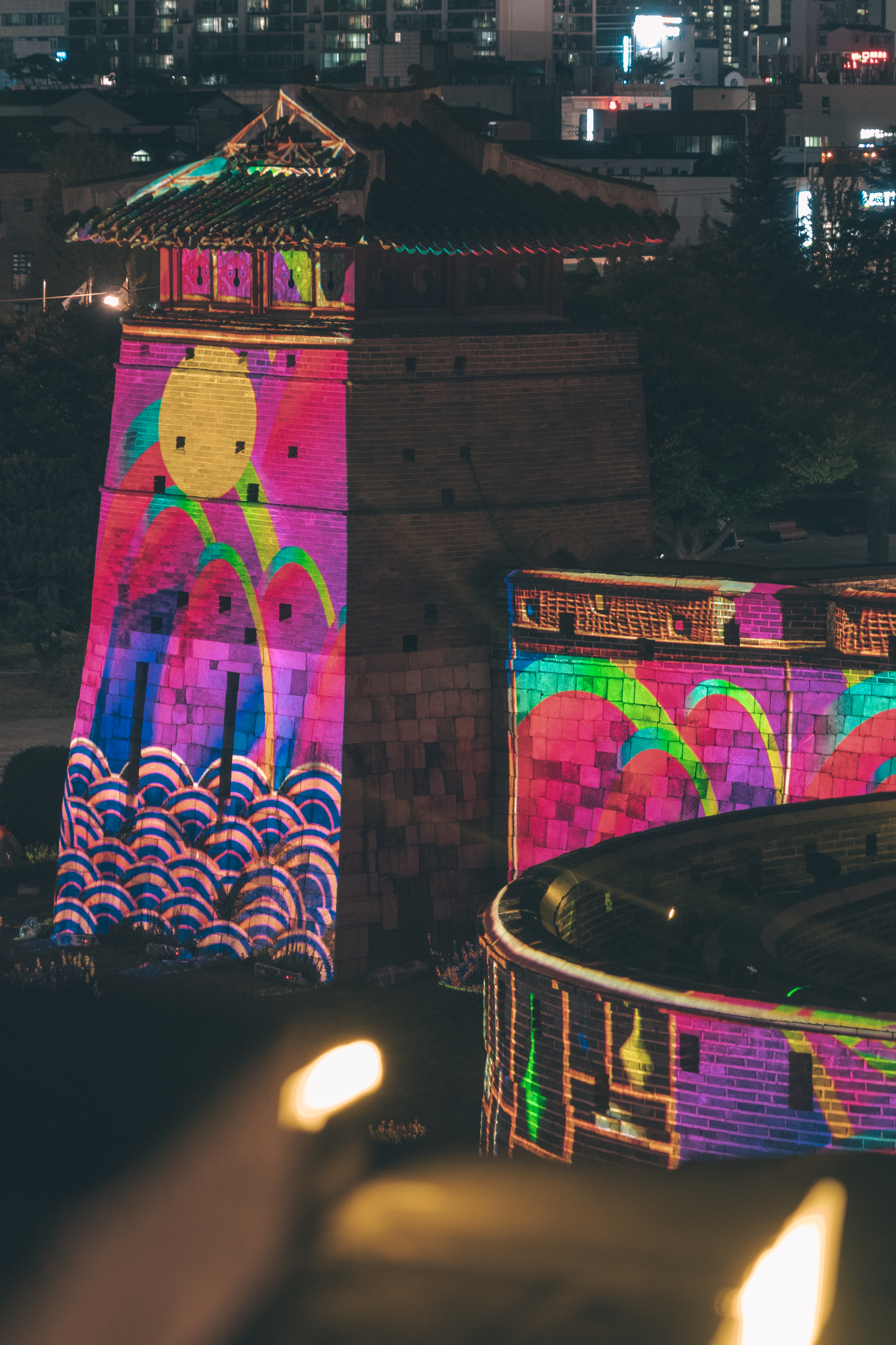 화서문뿐만 아니라 행궁거리에도 불빛이 이어지고 있었다. 비록 코로나때문에 며칠 지속되진 못했지만 너무 괜찮았던 쇼. 제발 내년부터는 오랫동안 잘 볼 수 있길 바란다. 제발.