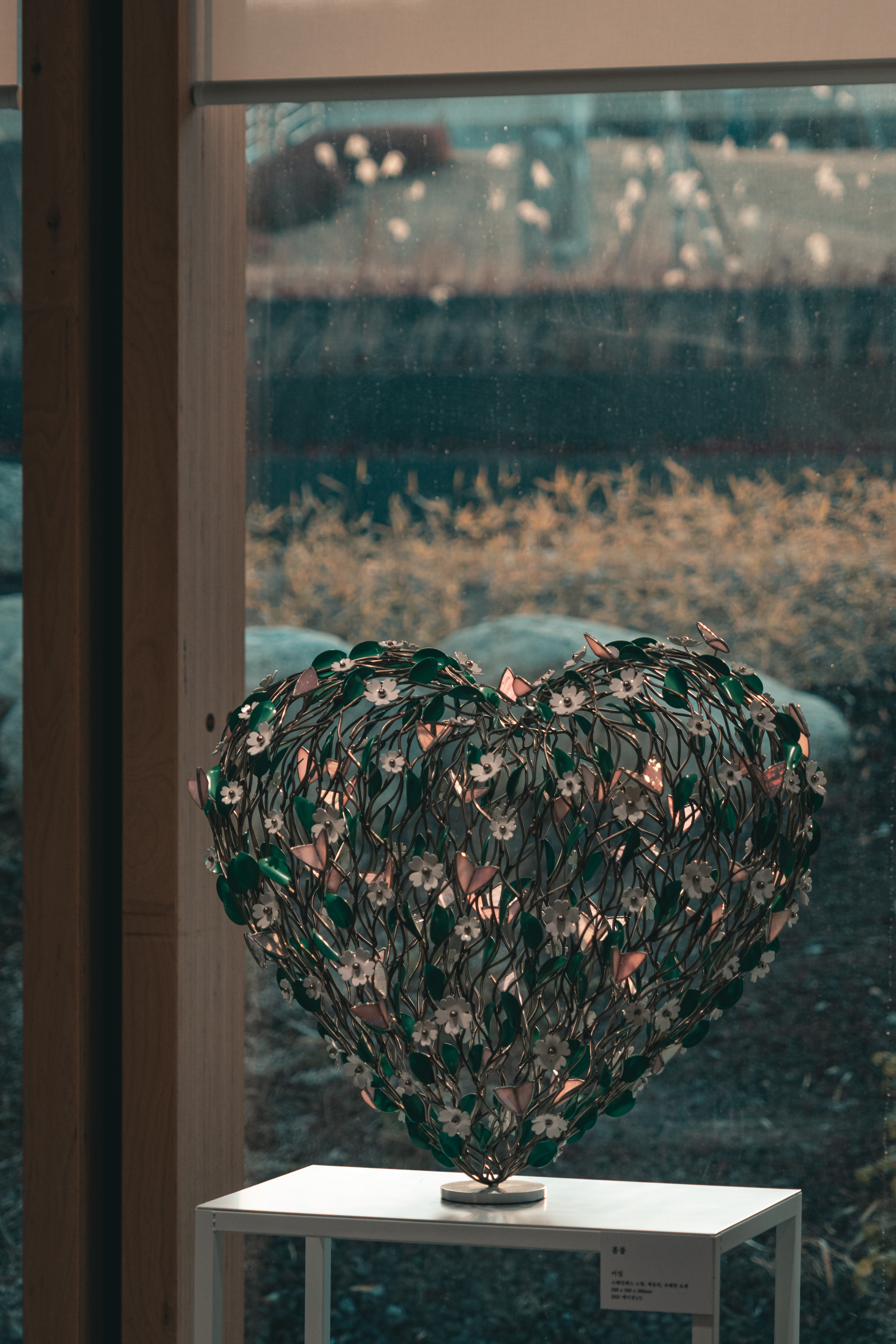 중간에 있던 조형물. '마음에 담다'라는 작품으로 변화는 나로부터, 우리로부터 시작된 것임을, 그 기억과 역사 속에서 우리는 또 다른 새 역사를 만들고 있음을 표현하는 작품.