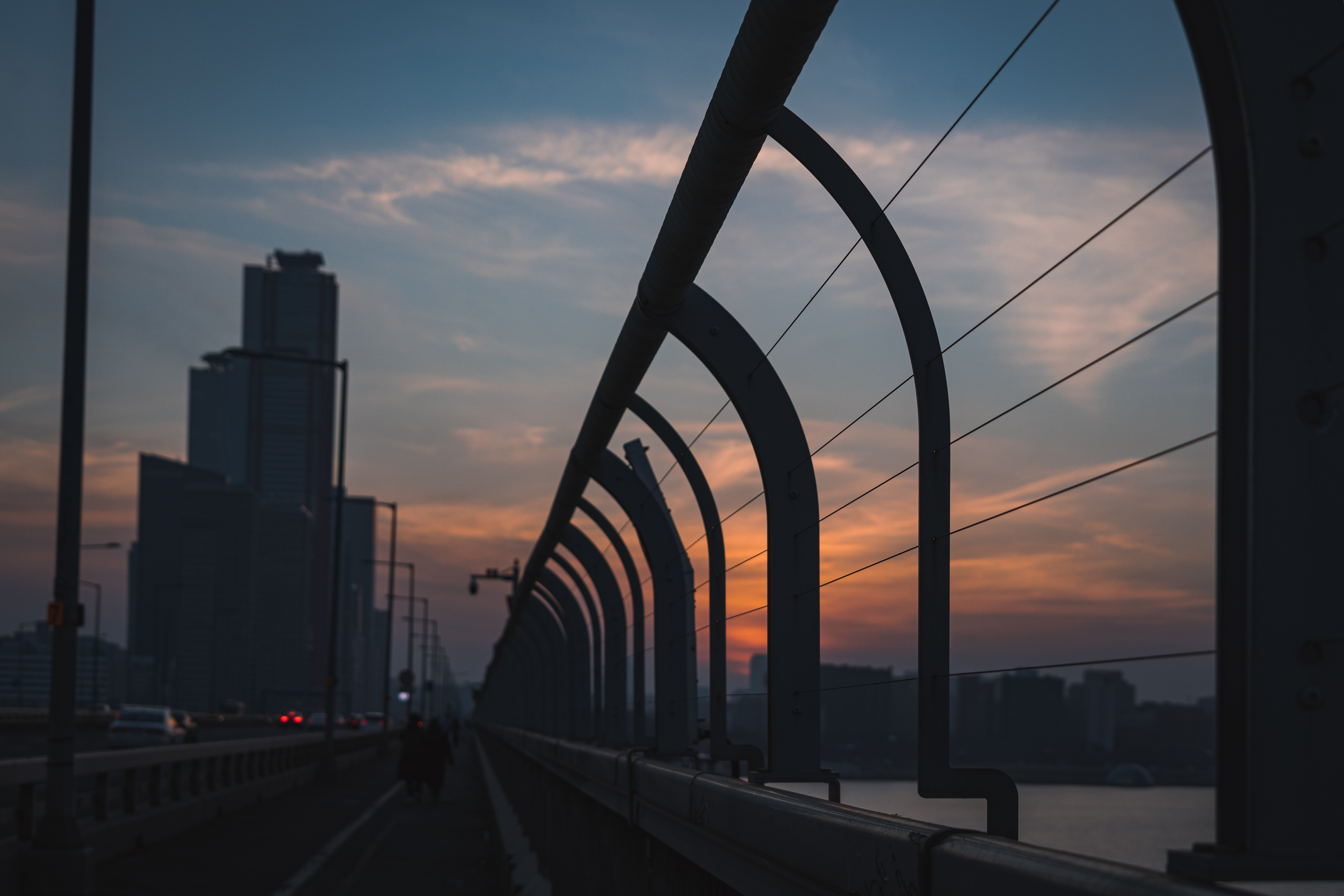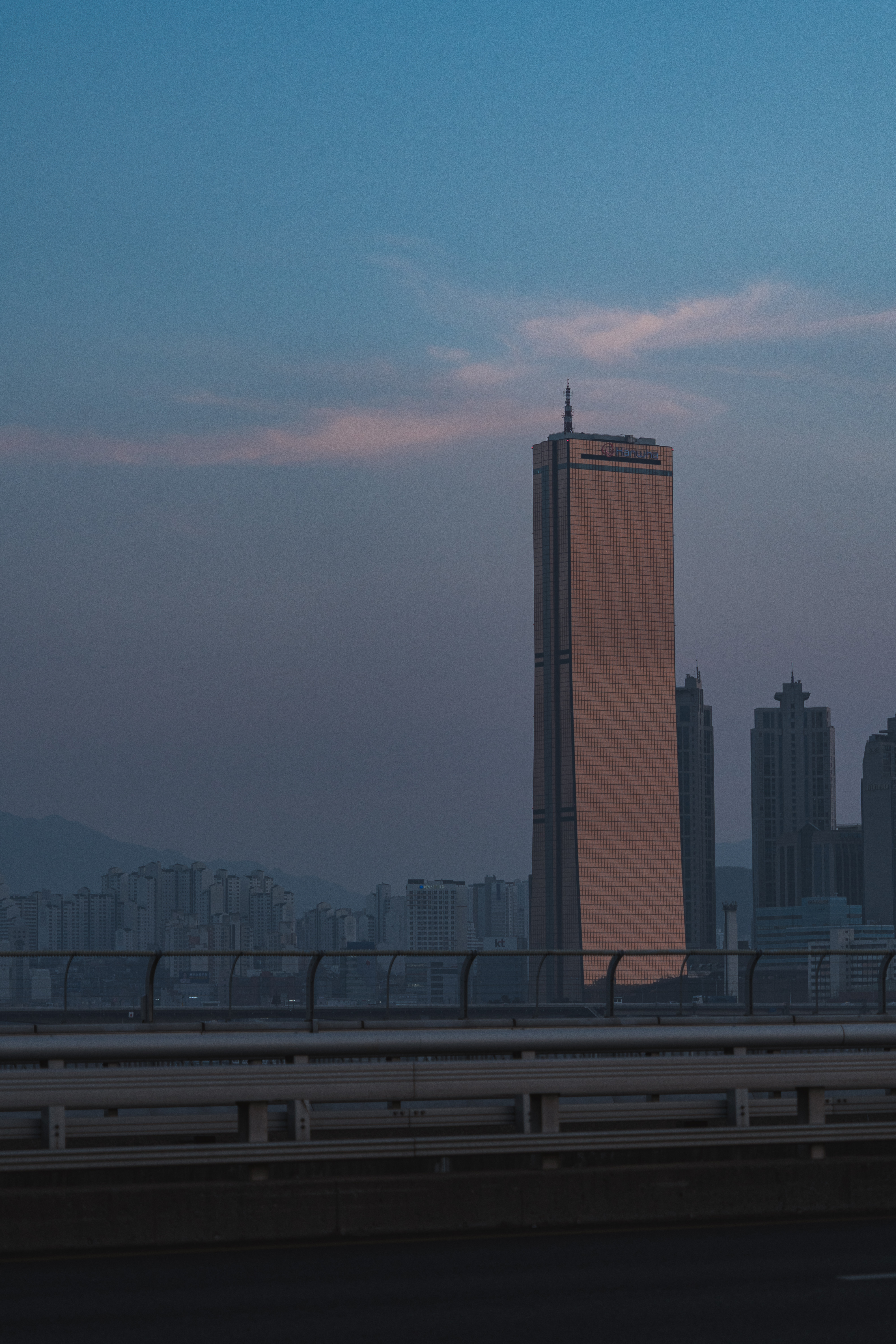 천천히 마포대교 위를 걸었다. 멀리 황금빛의 63빌딩이 보이고 차가 생각보다 많이 안지나가 조용한 거리를 찍을 수 있었다.